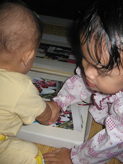 Pastu lagi...."Mama tantek...abah encem la...ehhhmmm" sambil dok belek-belek gambo dgn penuh minat.